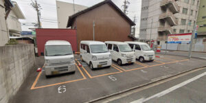 来店アポをお取りいただければ、当支店前の駐車場をお使いいただけます。駐車スペースが狭いので大型車両は停めにくいと思いますが、どうぞご利用ください。